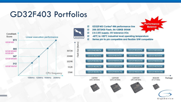 ● GD32F403系列高性能基本型Cortex-M4 MCU(20個型號)